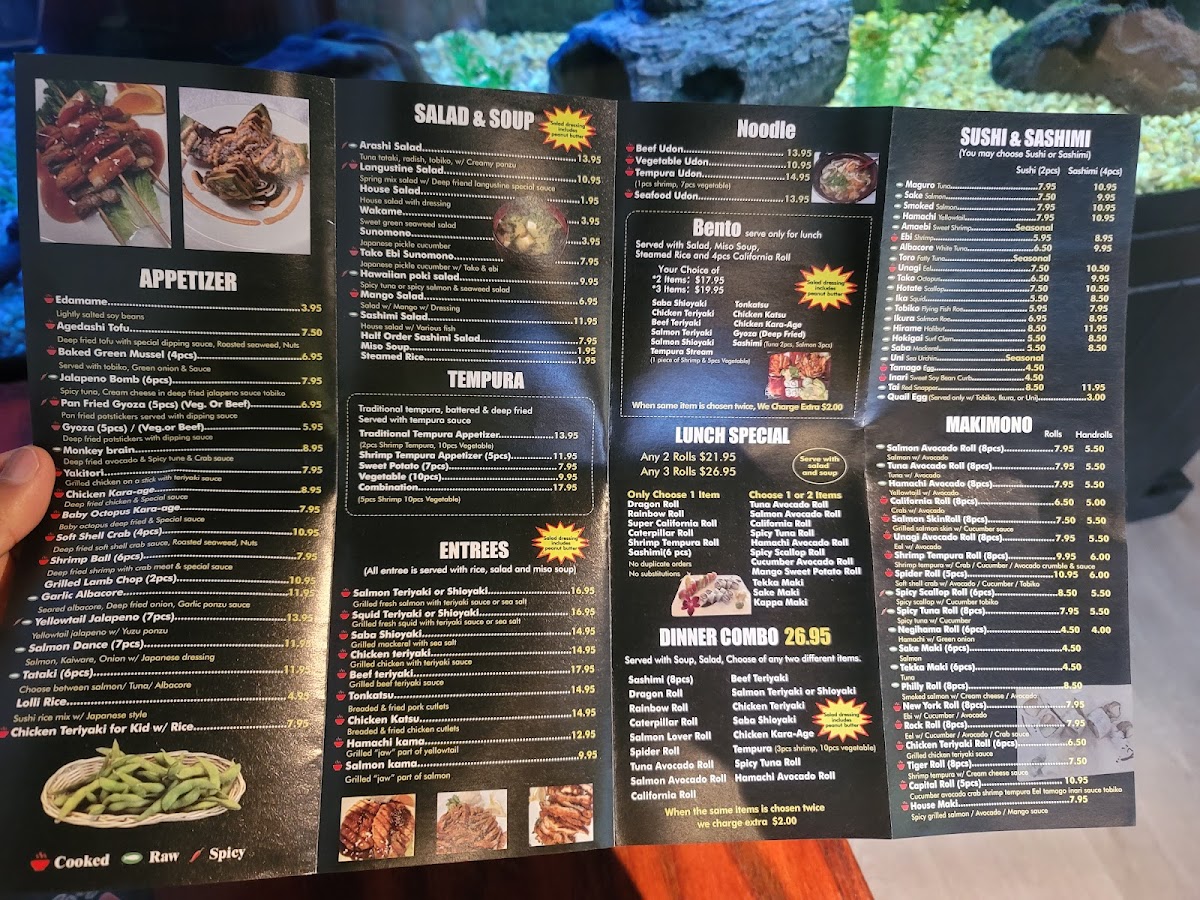 Create your ideal lunch combo by choosing three options from a variety of rolls such as Dragon, Rainbow, Tuna Avocado, Spicy Scallop, and more. Sashimi (6 pcs) also available.