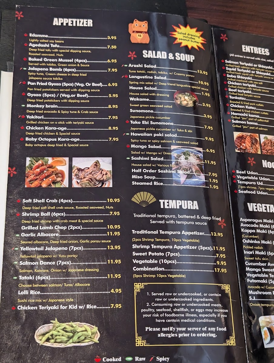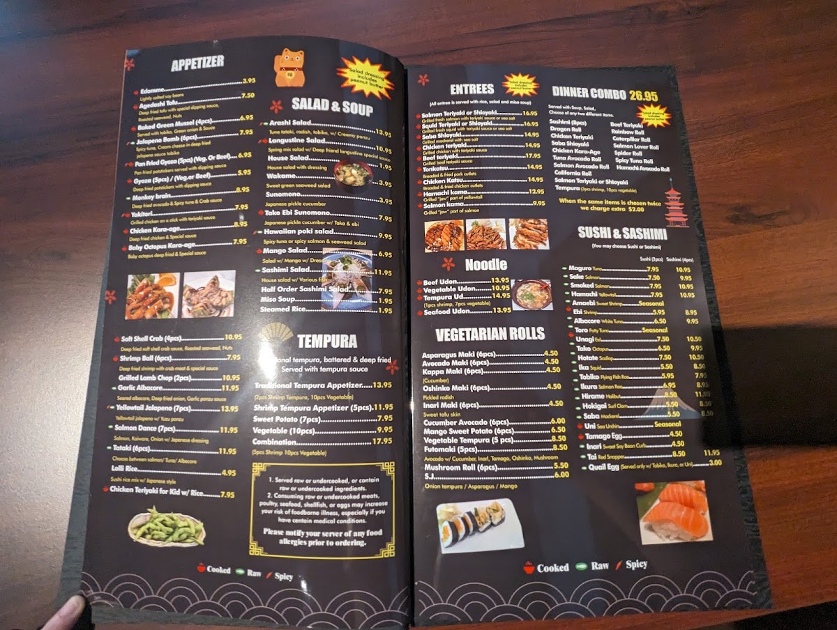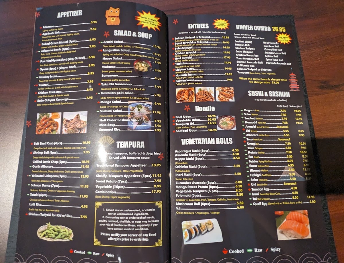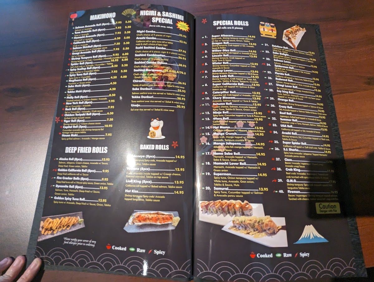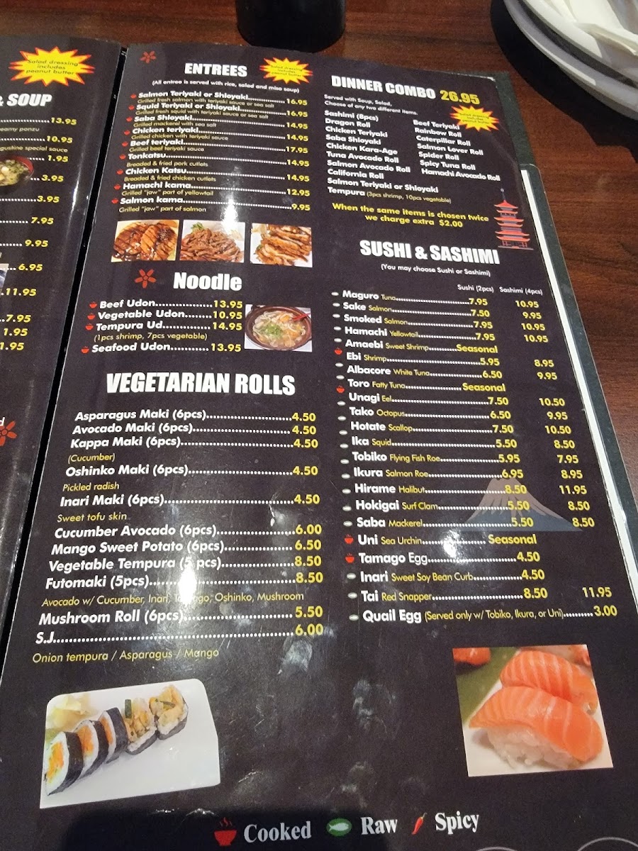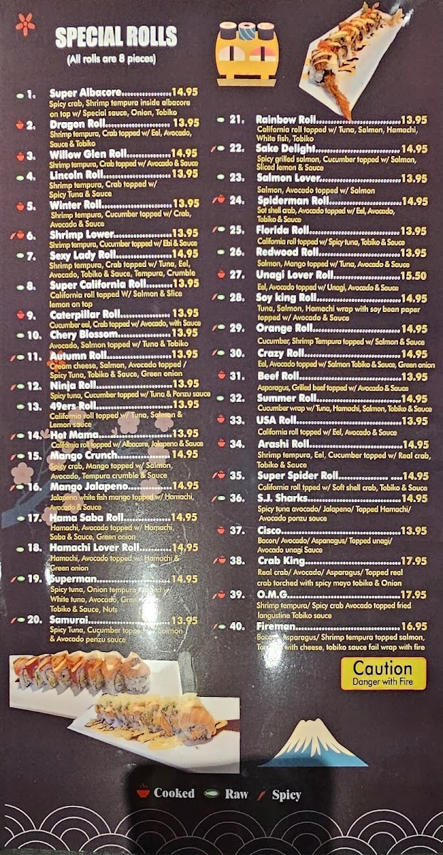 in( Asparagus, carrots, mango , oshinko, avocado, inari, spring mix, cucumber,mushroom ) cut 10 pieces